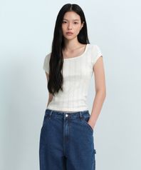 우먼즈 포인텔 스퀘어 넥 캡 슬리브 티셔츠 [크림]
