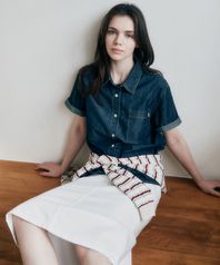 스트레이트 롱 데님 스커트 화이트