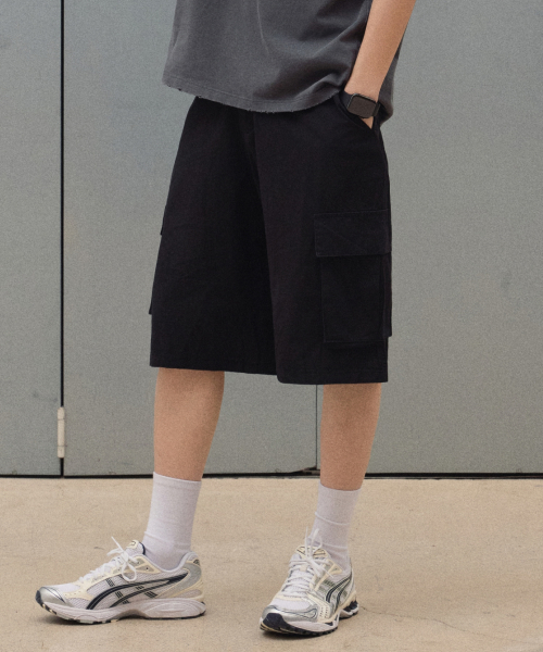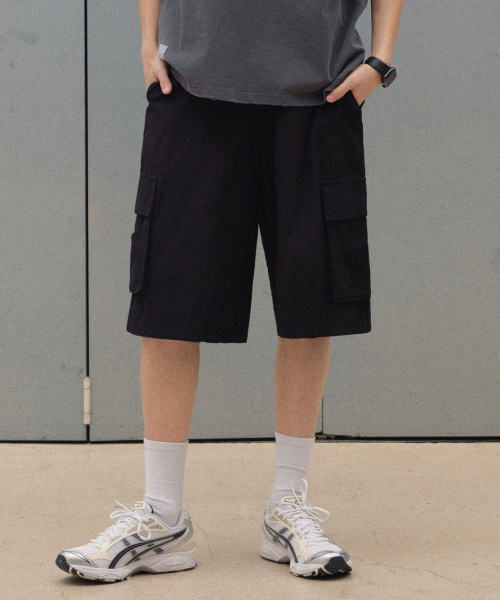 와이드 워싱카고쇼츠 [블랙]
