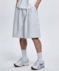 에센셜 원턱 와이드 버뮤다 스웨트 쇼츠 [화이트멜란지]
