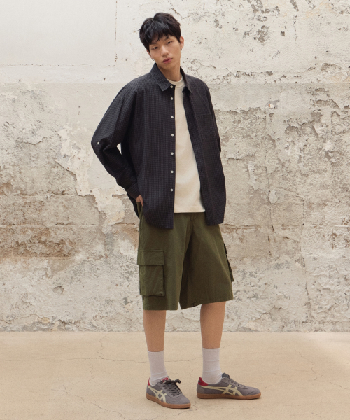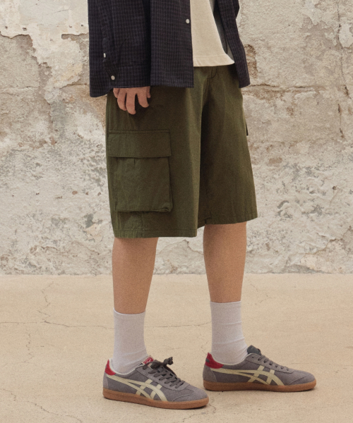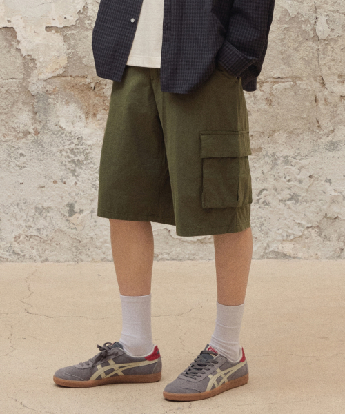 와이드 워싱카고쇼츠 [카키]