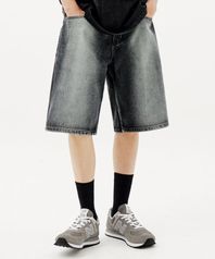 프론트 워싱 버뮤다 데님 쇼츠 (BLACK)