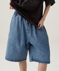버뮤다 원턱 밴딩 데님 숏 팬츠 라이트블루