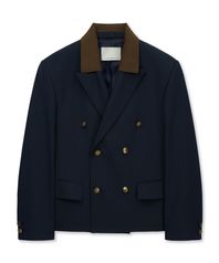 HERRINGBONE DOUBLE BREASTED JACKET (NAVY)
