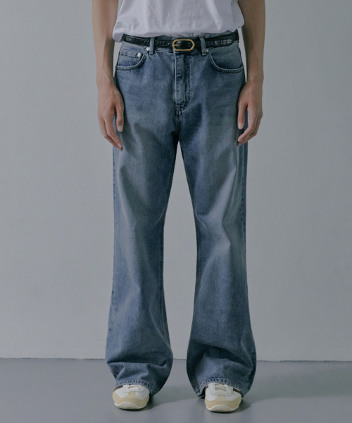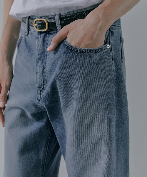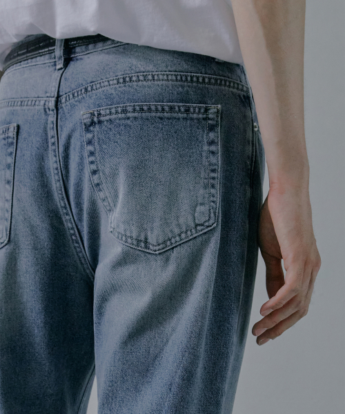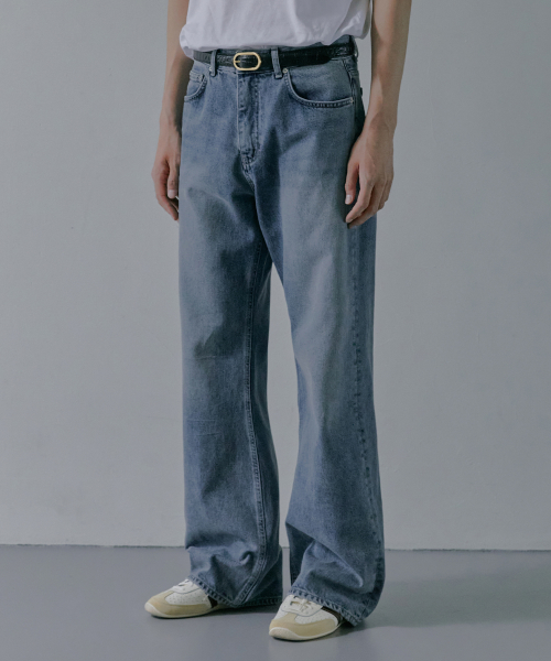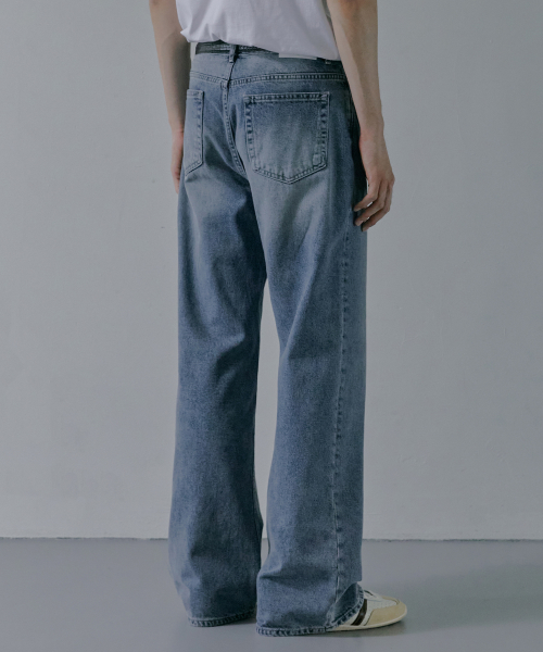 M194 워싱 세미 와이드 데님 팬츠_진청 [숏기장 추가]