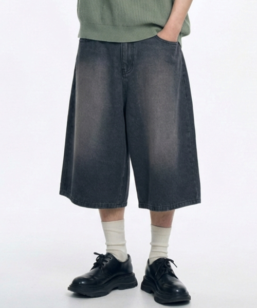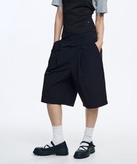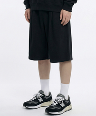 원턱 스웨트 버뮤다 쇼츠 블랙