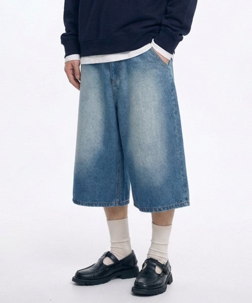 원 턱 롱 버뮤다 스웨트 팬츠 [미디엄 그레이]