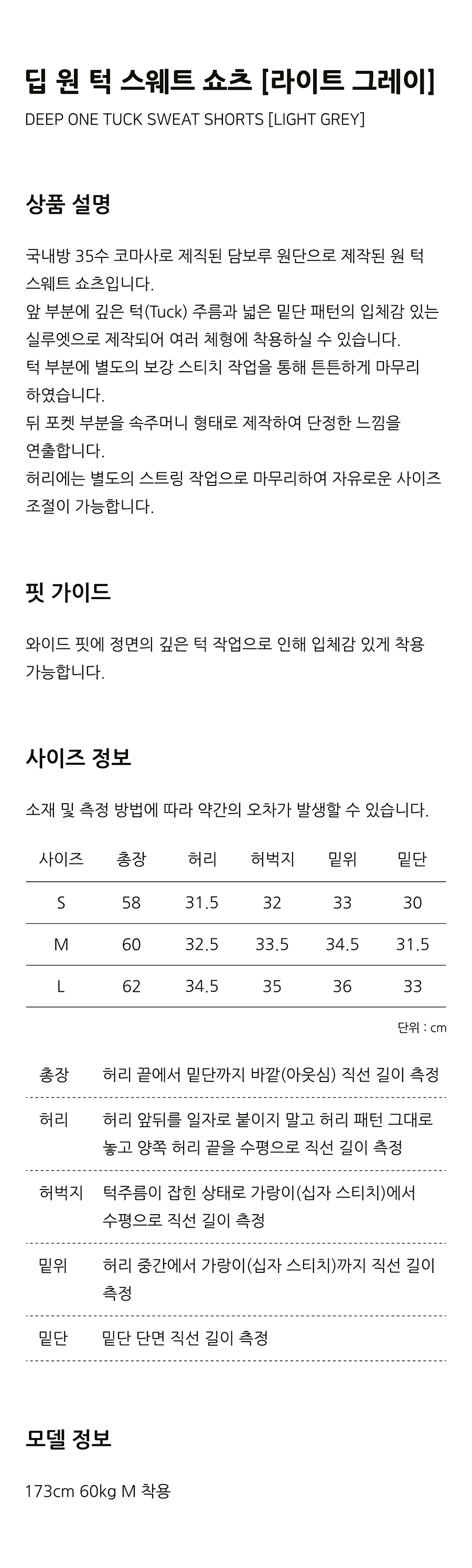 [쿨탠다드] 원 턱 버뮤다 스웨트 팬츠 [멜란지 라이트 그레이]