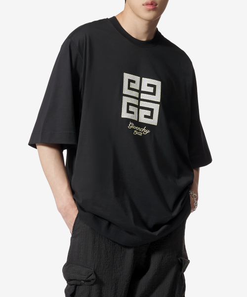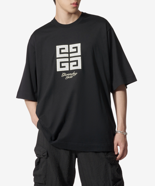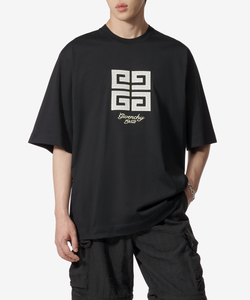 4G 자수 로고 코튼 슬림핏 반소매 티셔츠 - 블랙 / BM716G3YCC001