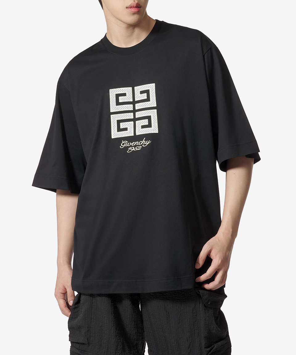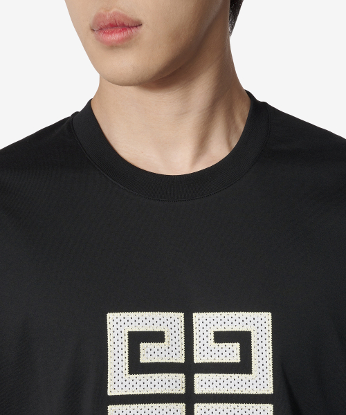 4G 메쉬 엠블럼 자수 로고 클래식핏 반소매 티셔츠 - 블랙 / BM712H3YMV001
