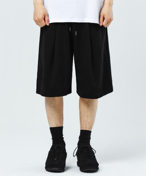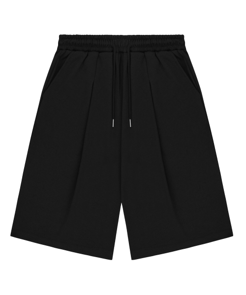 버뮤다 와이드핏 원턱 트레이닝 반바지 - 블랙