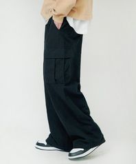 와이드 빅포켓 밴딩 카고 팬츠 블랙