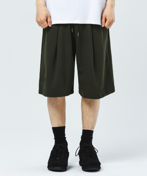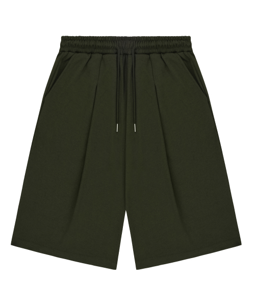 버뮤다 와이드핏 원턱 트레이닝 반바지 - 카키