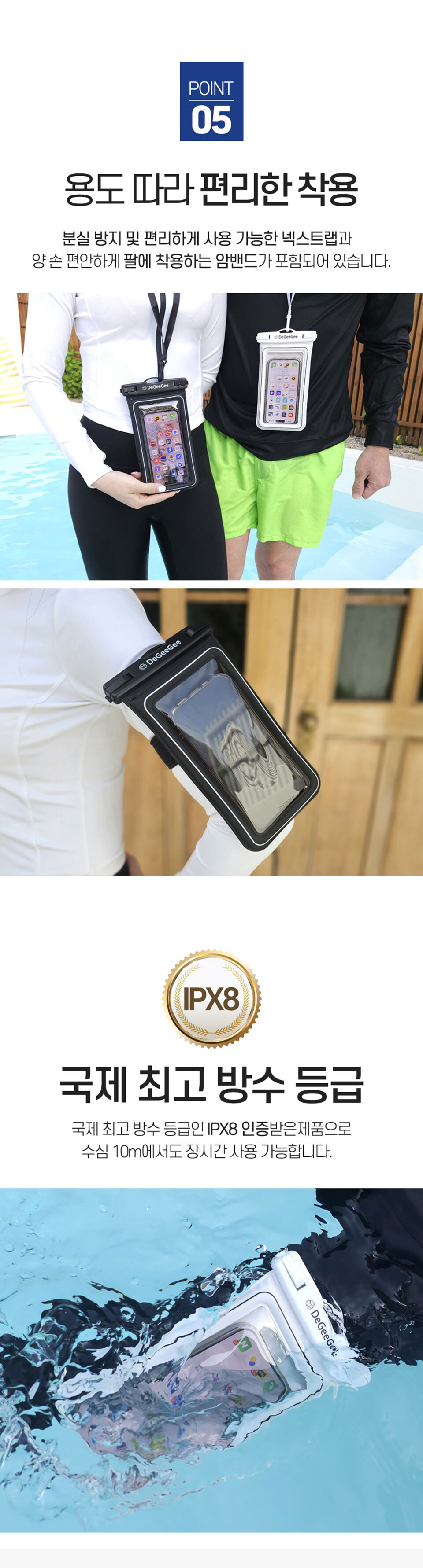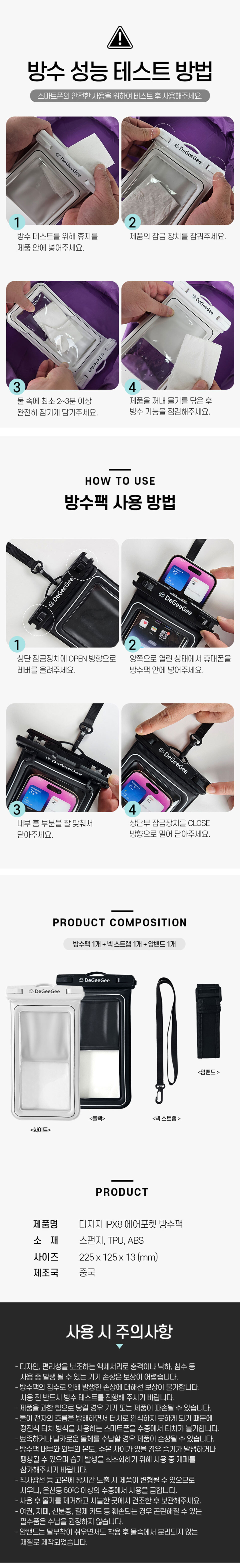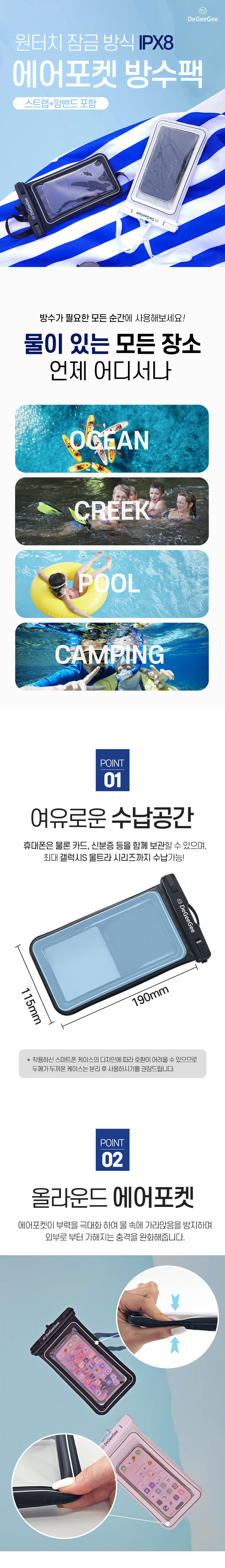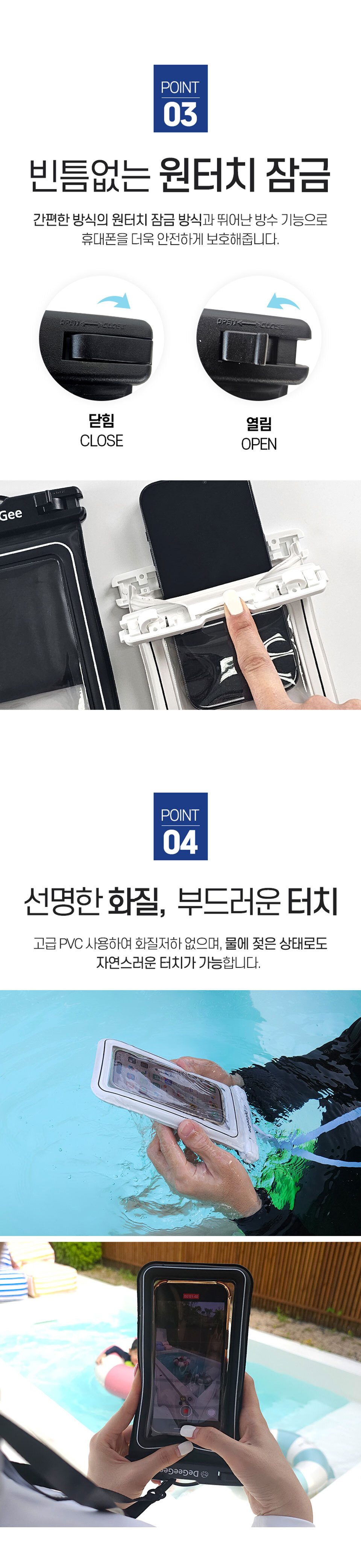 4중잠금 IPX8 원터치 스마트폰 방수팩 (암밴드/넥스트랩 포함)