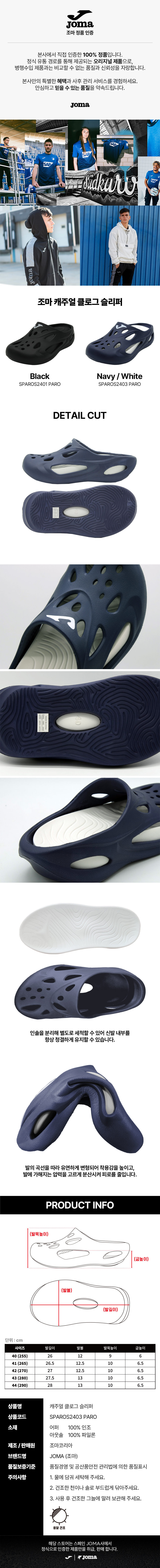 SPAROS2403 PARO 캐주얼 클로그 슬리퍼 Navy/White