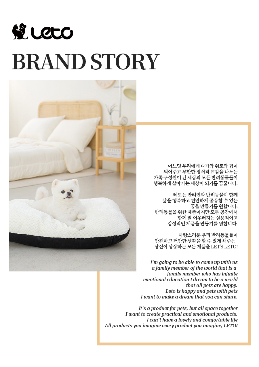 레토(LETO)는 라틴어로 '기쁨'을 뜻합니다. 고객에게 기쁨이 되고자 하는 기업 이념을 담고 있습니다. 좋은 제품을 좋은 가격으로 판매하여 고객에게 기쁨을 드리고자 합니다.