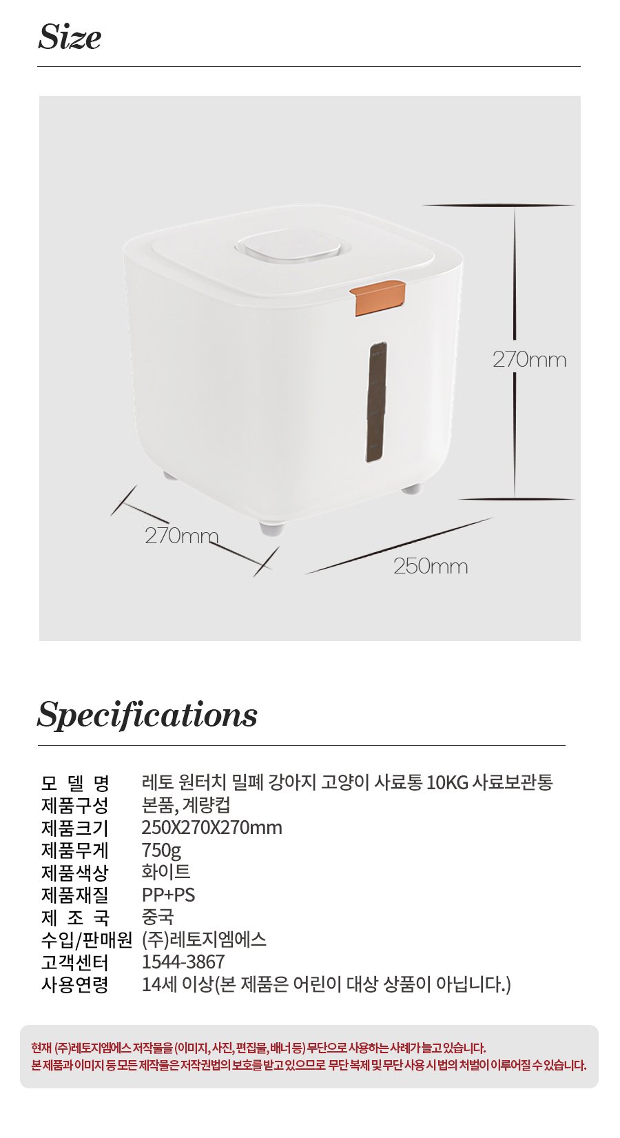 원터치 밀폐 강아지 고양이 사료통 10KG
