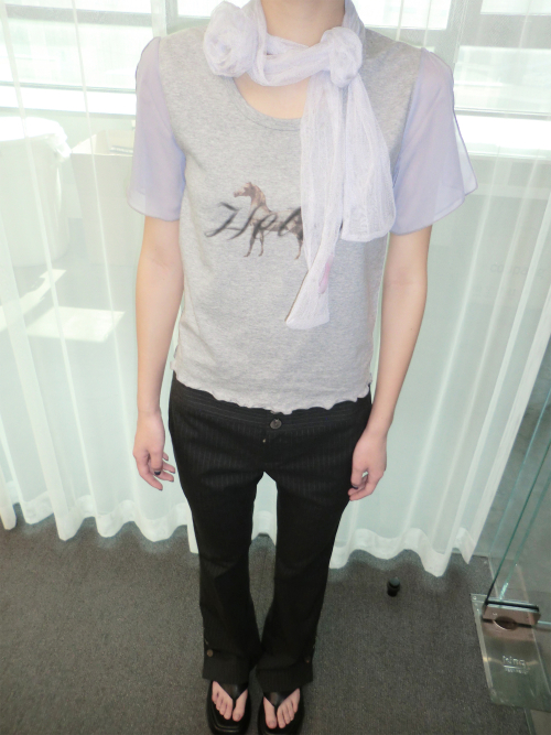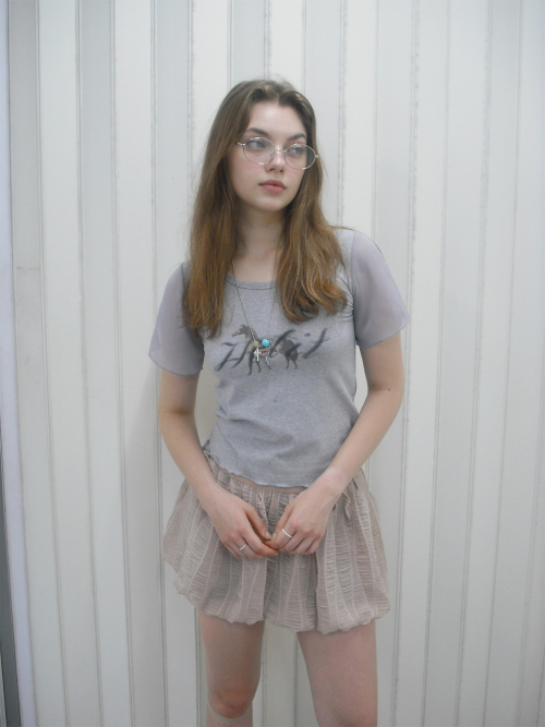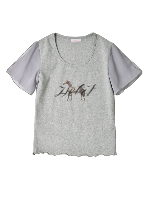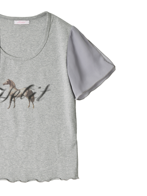 홀스 프린트 웨이비 티셔츠 (그레이)