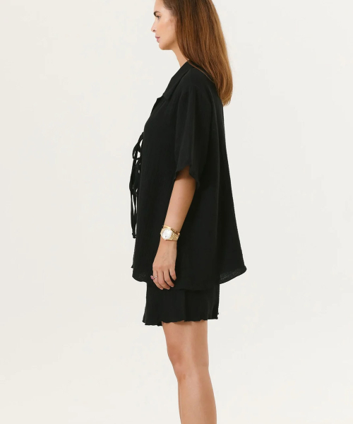 모달 거즈 버튼 긴팔 상하 세트 크림/블랙
