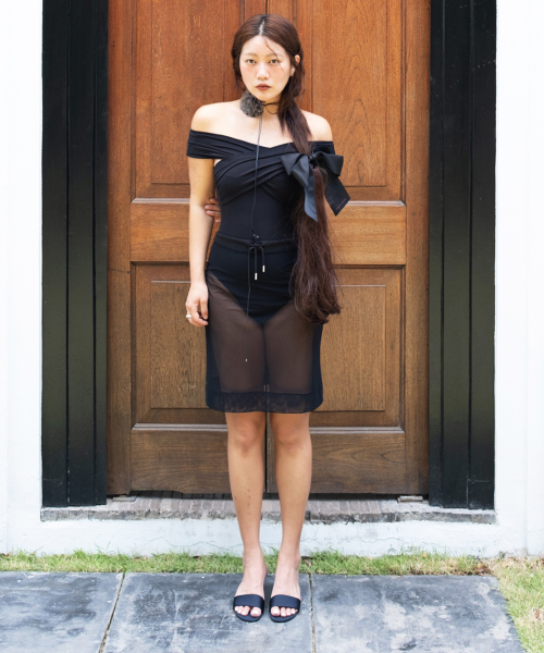Sojeanne X PLAC 오프숄더 바디수트 블랙