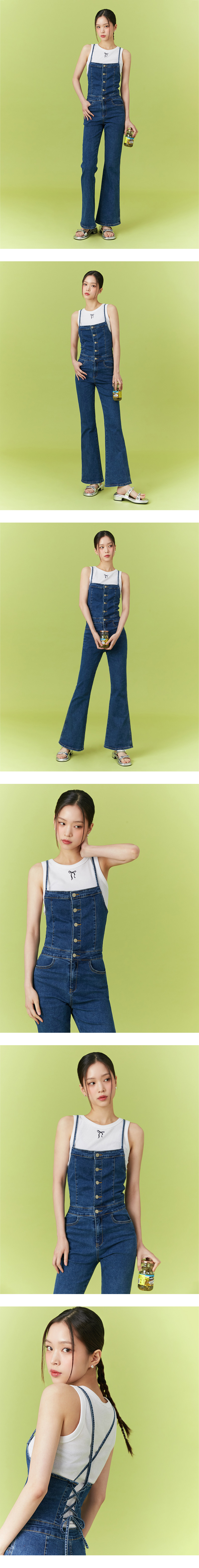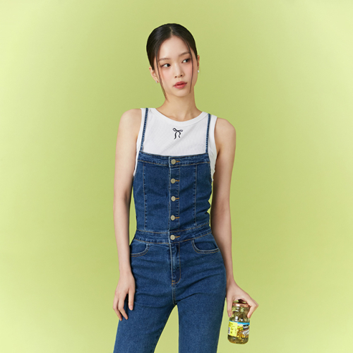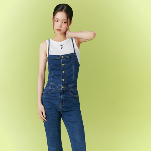 데님 백 코르셋 부츠컷 오버롤 AQ2DO566