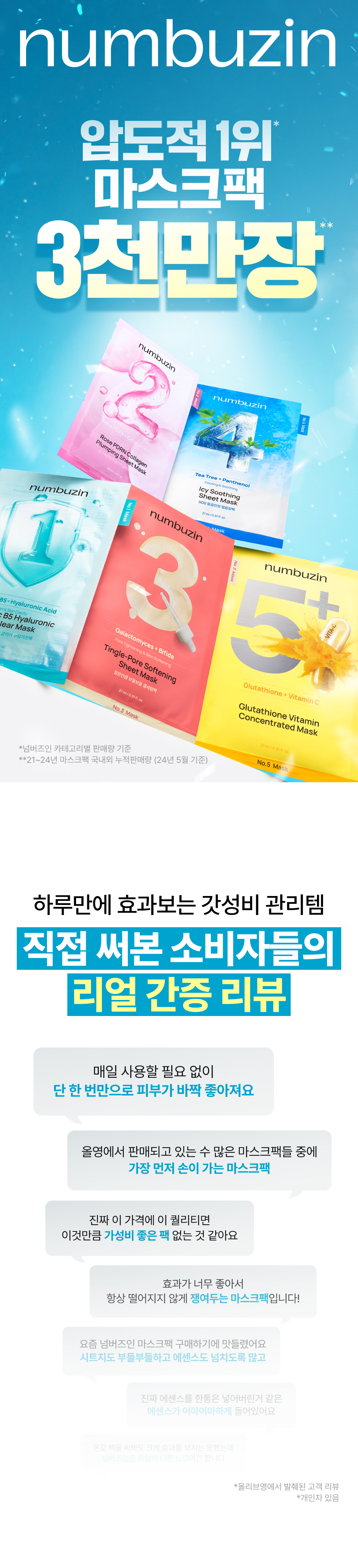 넘버즈인(NUMBUZIN)은 고객 중심의 맞춤형 스킨케어 브랜드입니다. 다양한 솔루션으로 나만의 피부 정답을 찾아보세요.