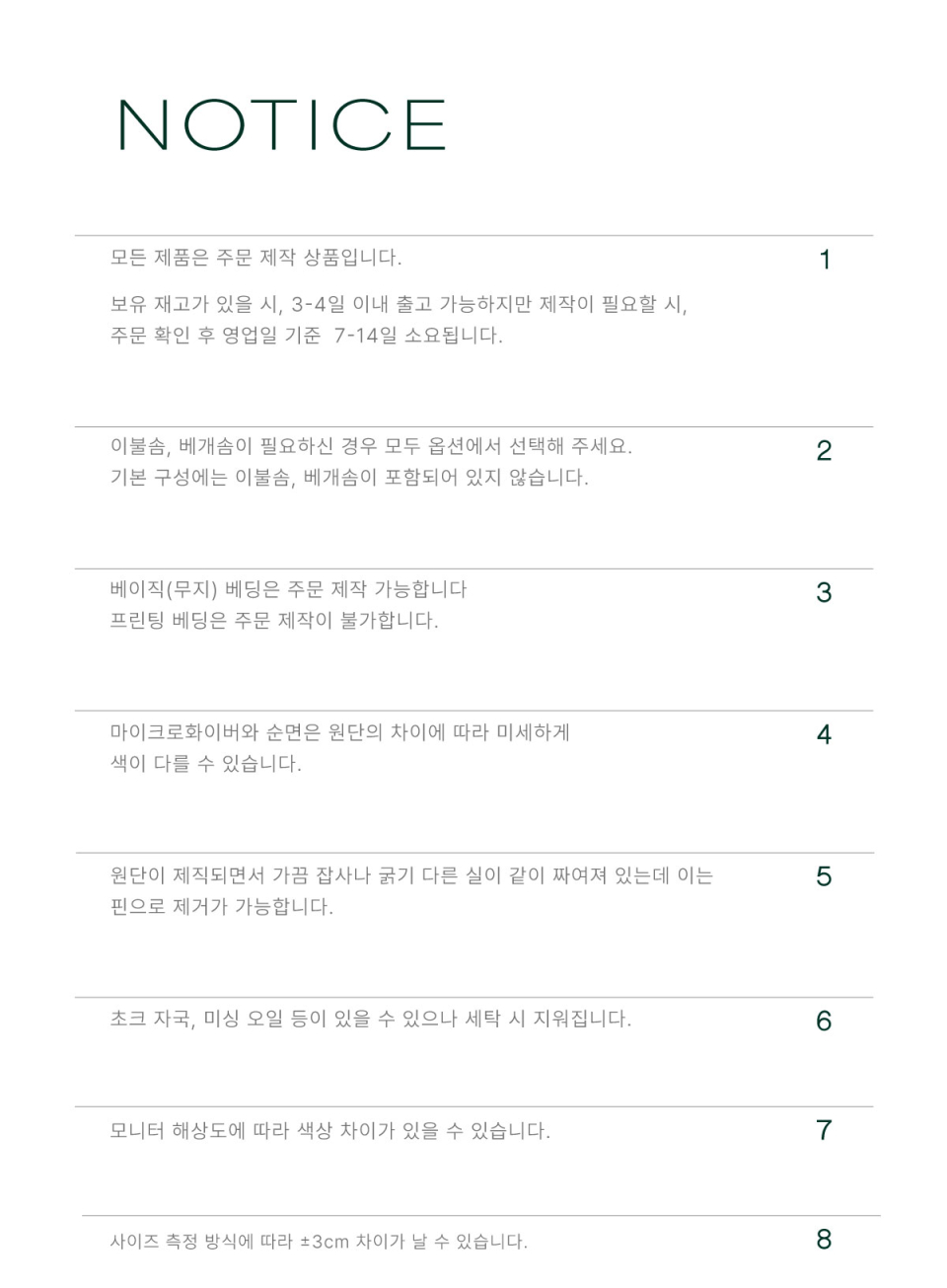 주문 제작이 필요할 시, 주문 확인 후 영업일 기준 7-10일 소요됩니다.