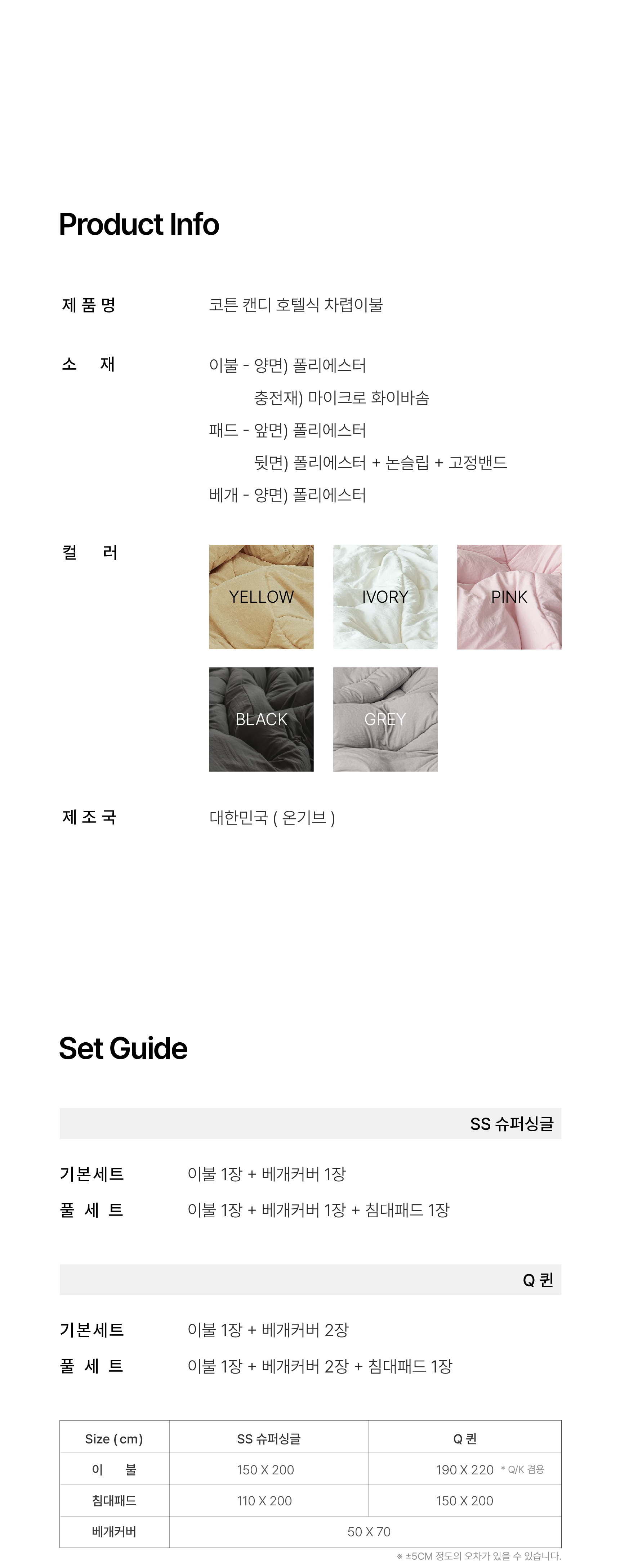 코튼 캔디 호텔식 차렵이불 세트 5colors(SS/Q)