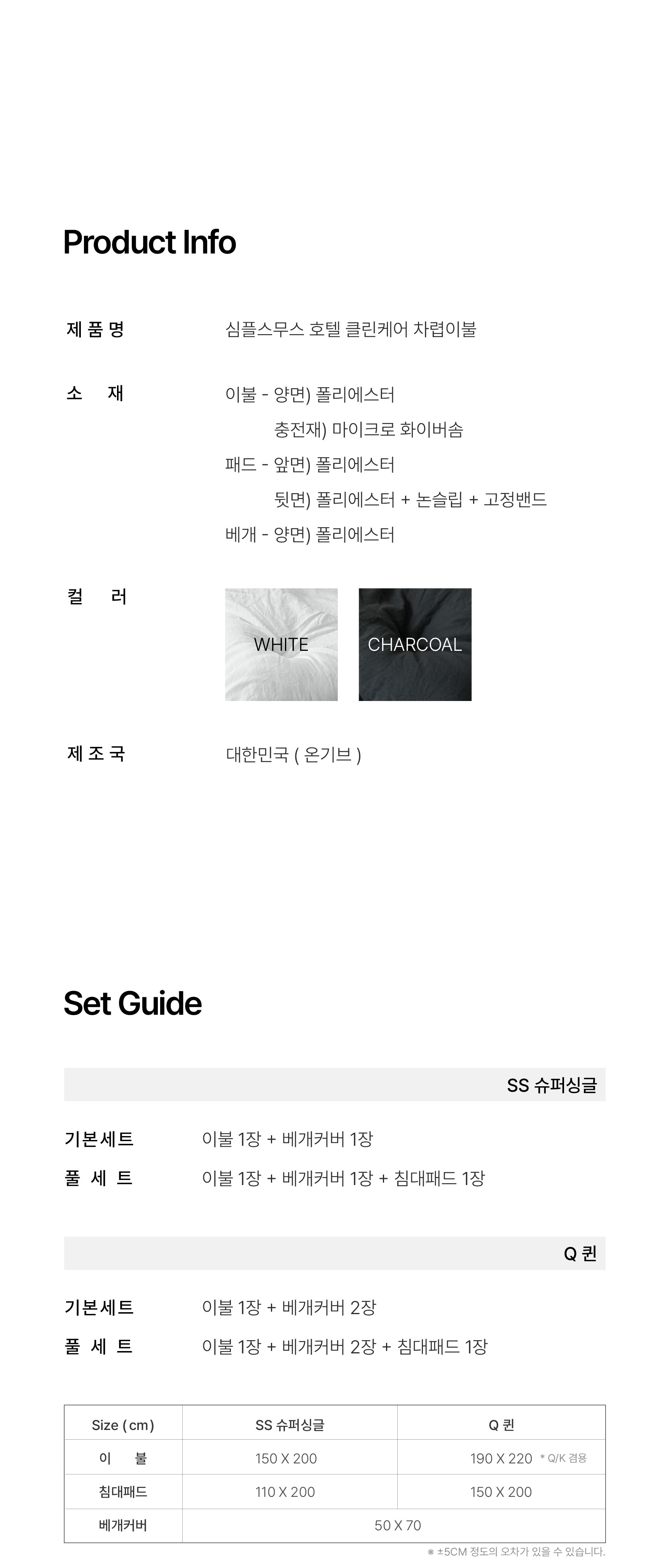 심플스무스 호텔 이불세트 2colors(SS/Q)
