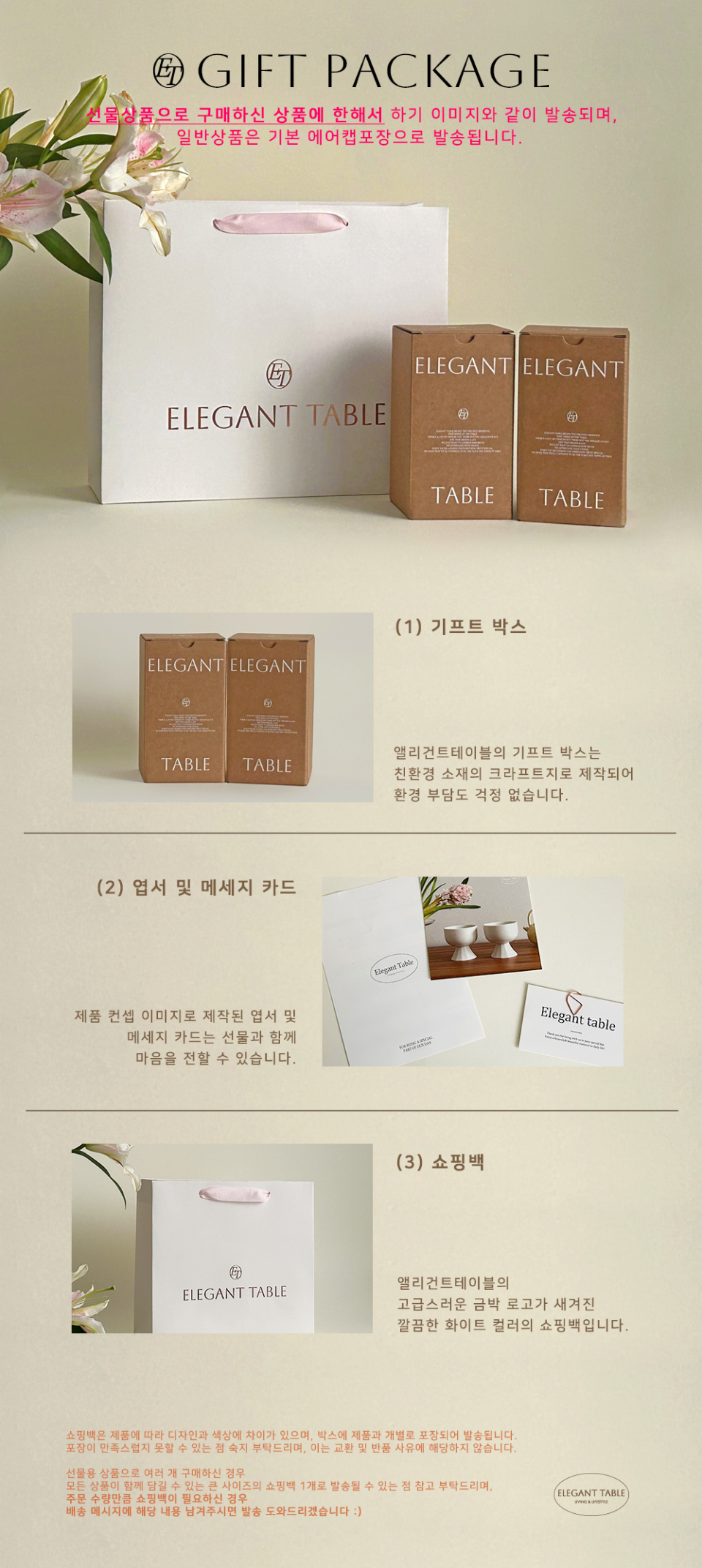 앨리건트 테이블(ELEGANT TABLE)은 감성 가득한 테이블 웨어를 제안하는 라이프스타일 브랜드입니다. 일상에 즐거움을 더하기 위한 감각적이고 합리적인 가격대의 테이블 웨어를 제안합니다.