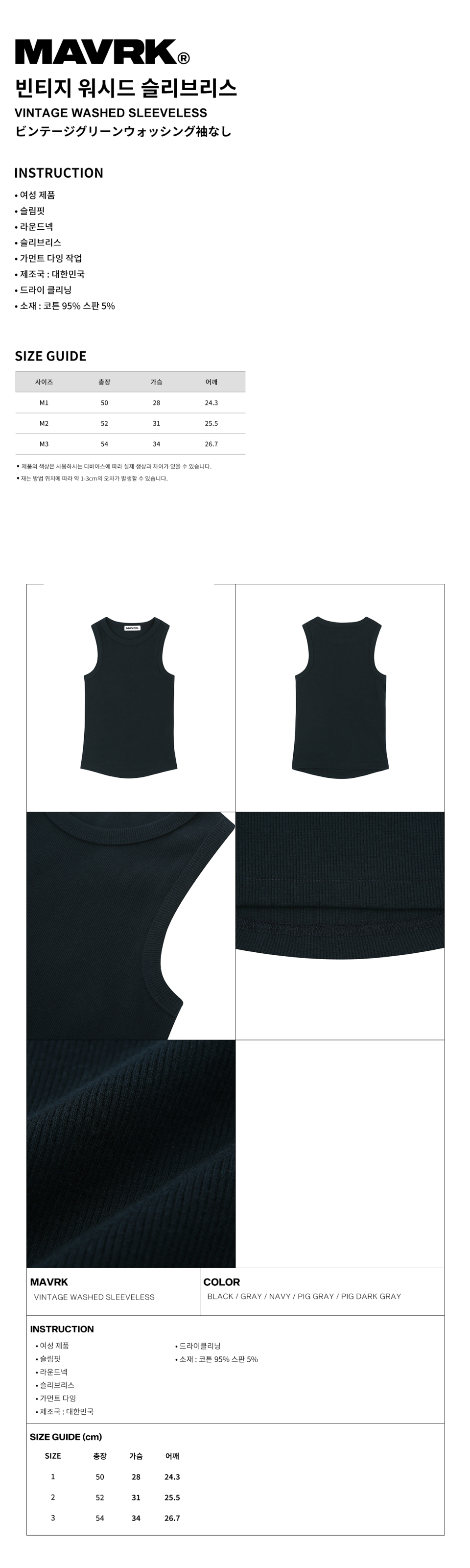 빈티지 워시드 크롭 슬리브리스 [블랙]