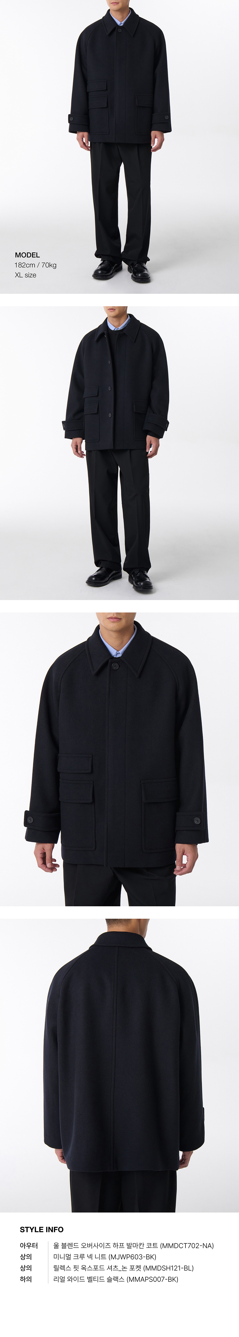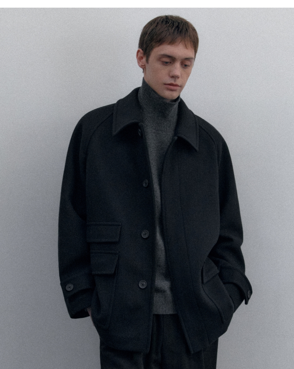 울 블렌드 오버사이즈 하프 발마칸 코트 [네이비]