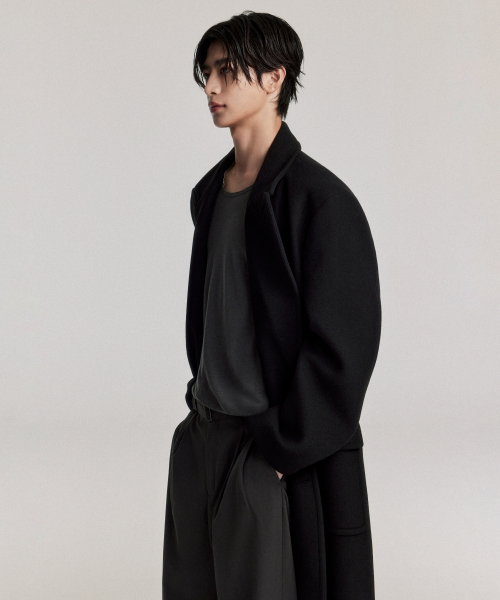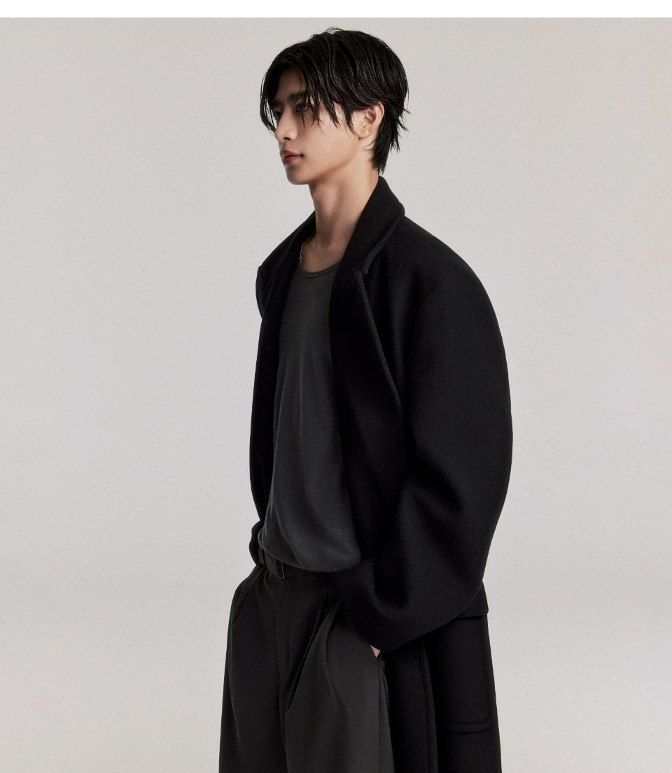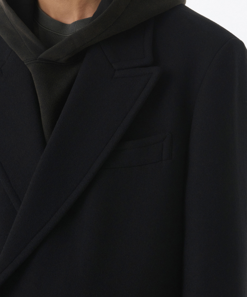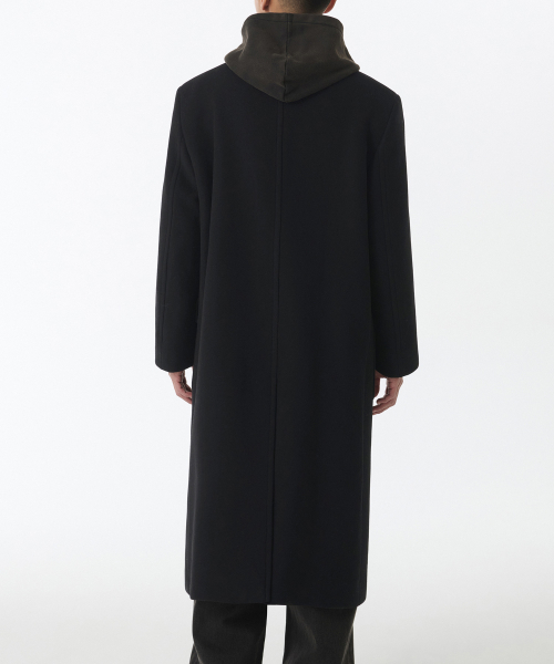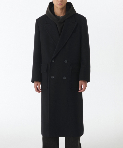 울 블렌드 대디 숄더 롱 폴로 코트 [블랙]