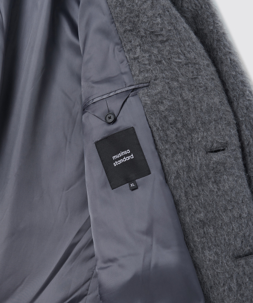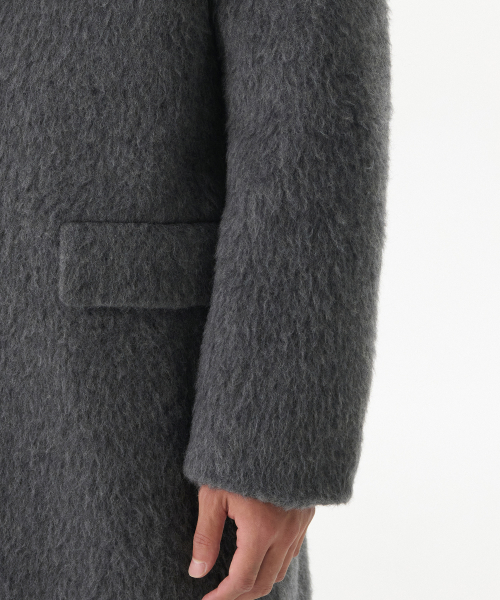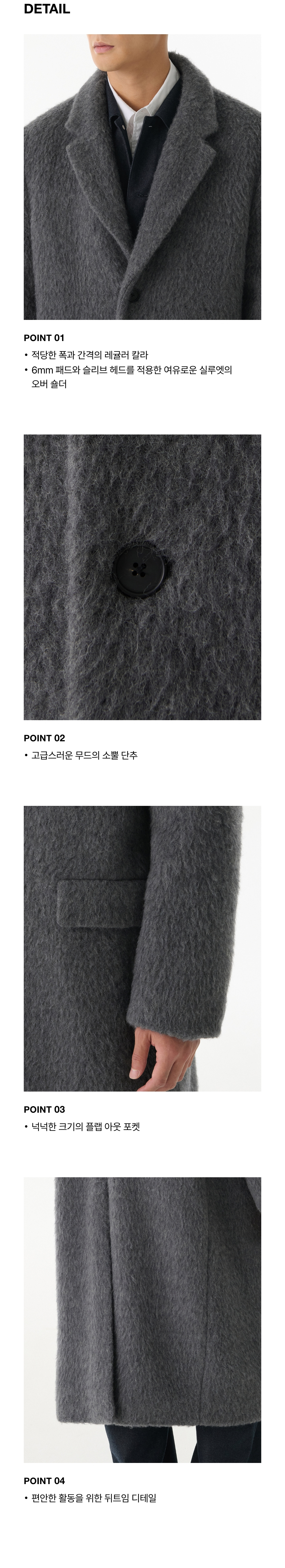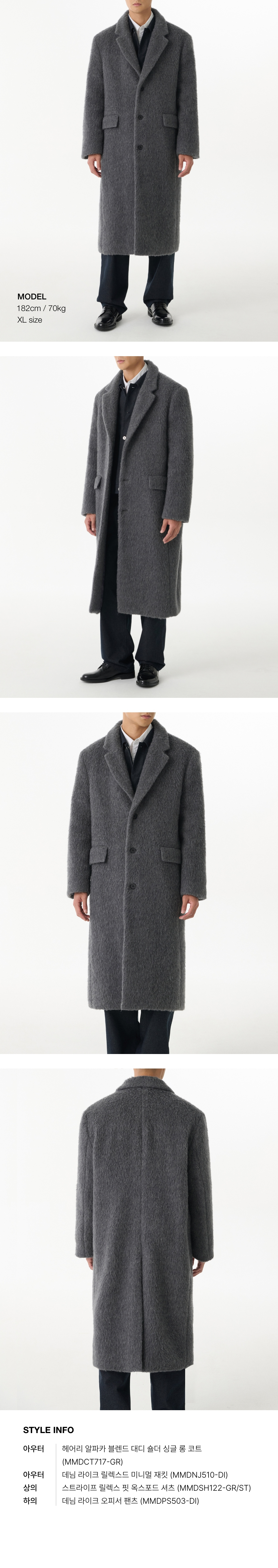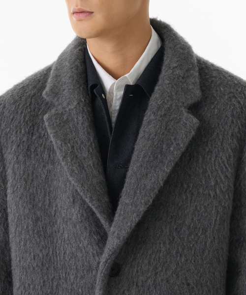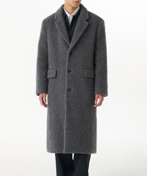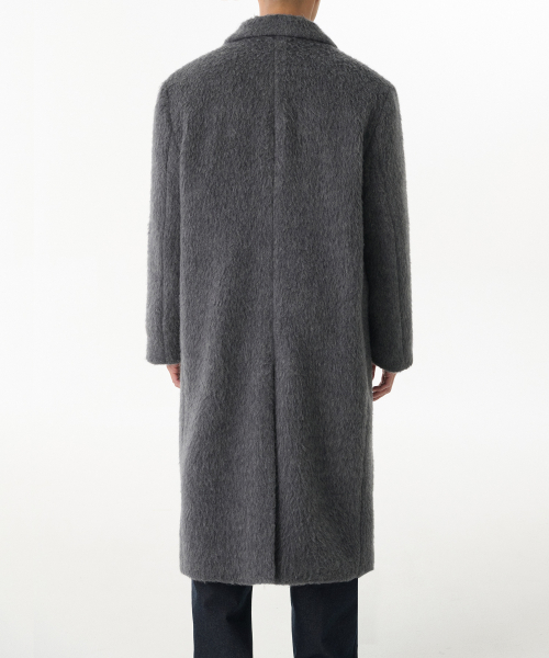 헤어리 알파카 블렌드 대디 숄더 싱글 롱 코트 [그레이]