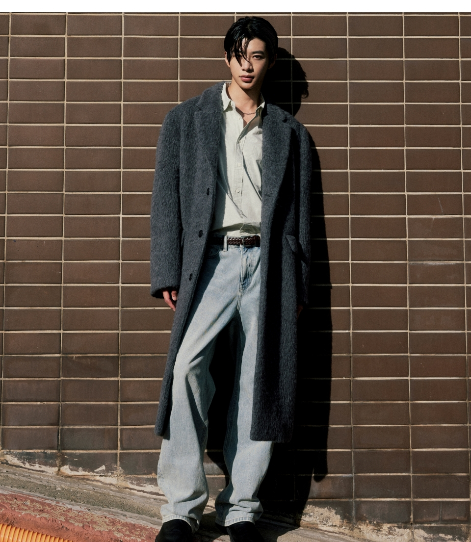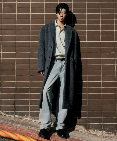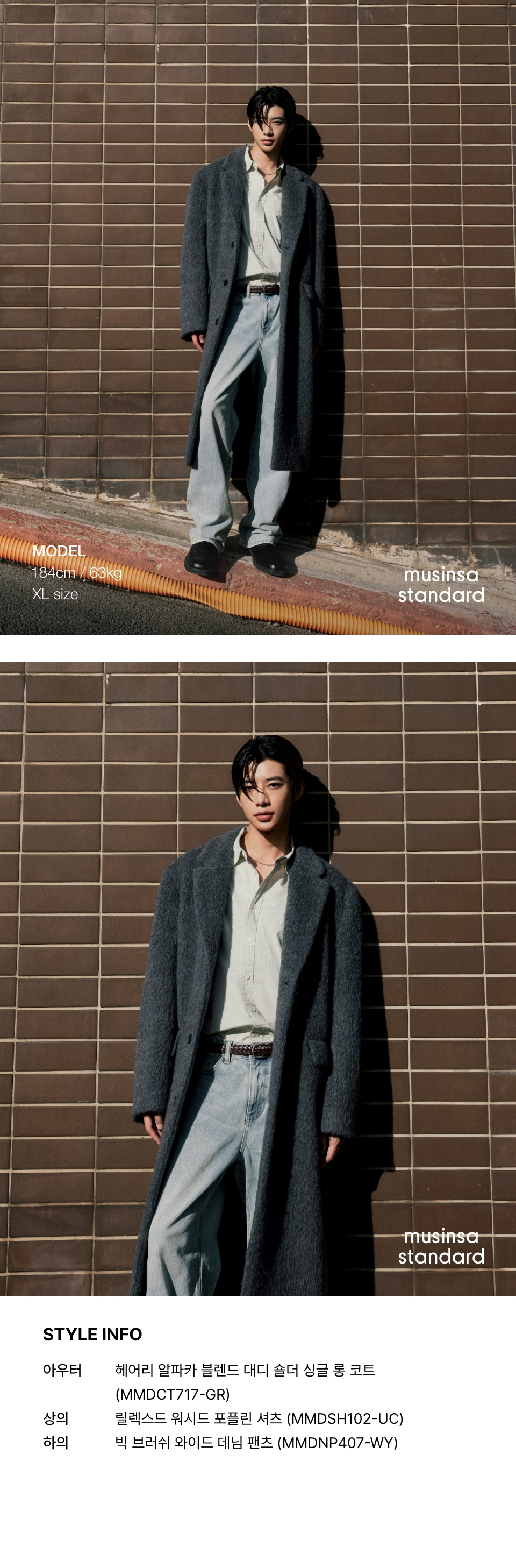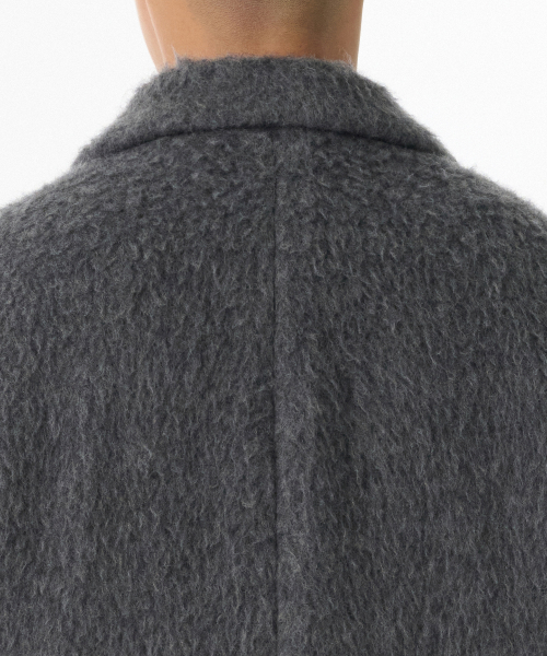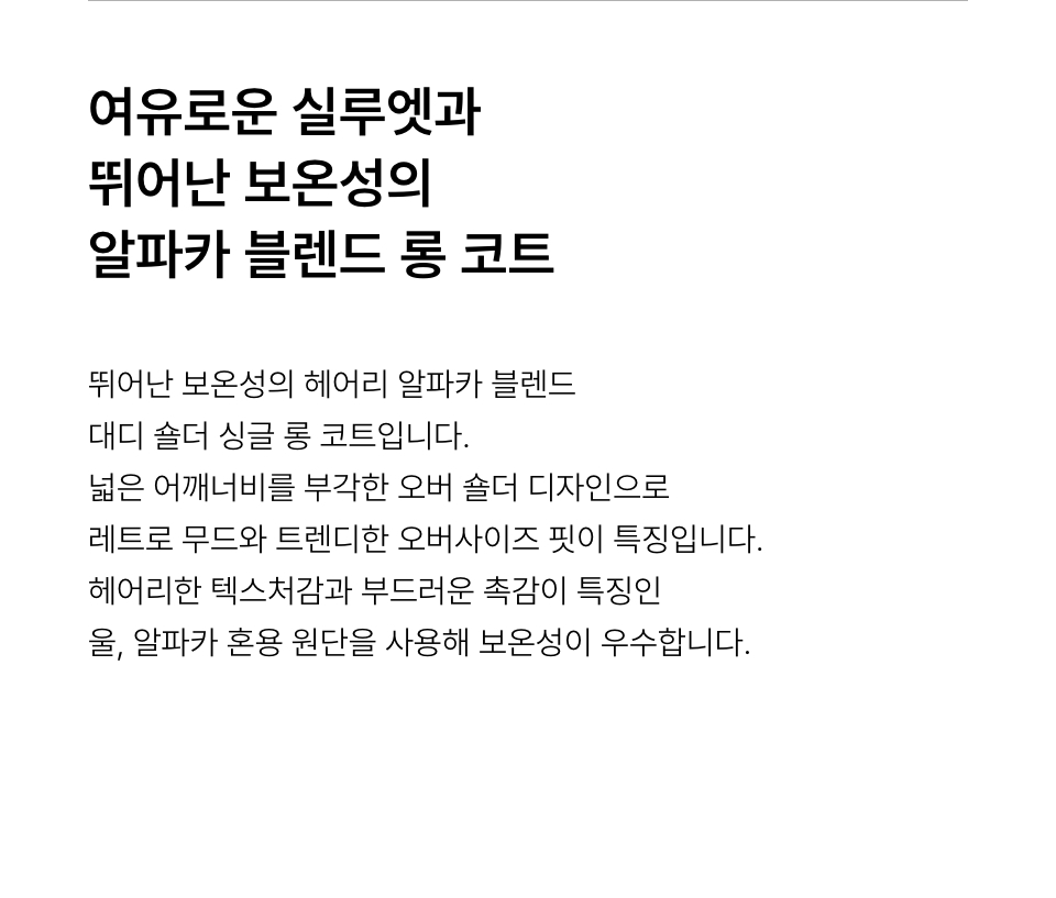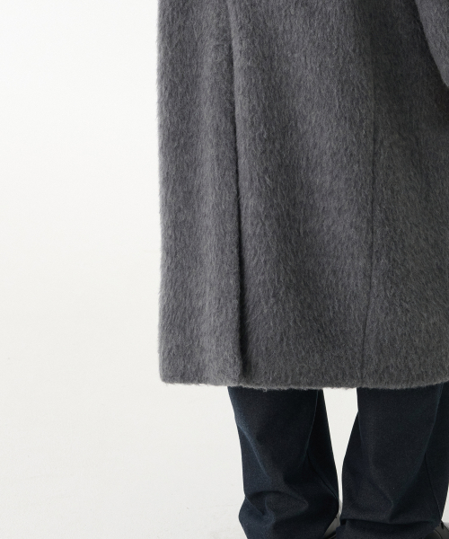 헤어리 알파카 블렌드 대디 숄더 싱글 롱 코트 [그레이]