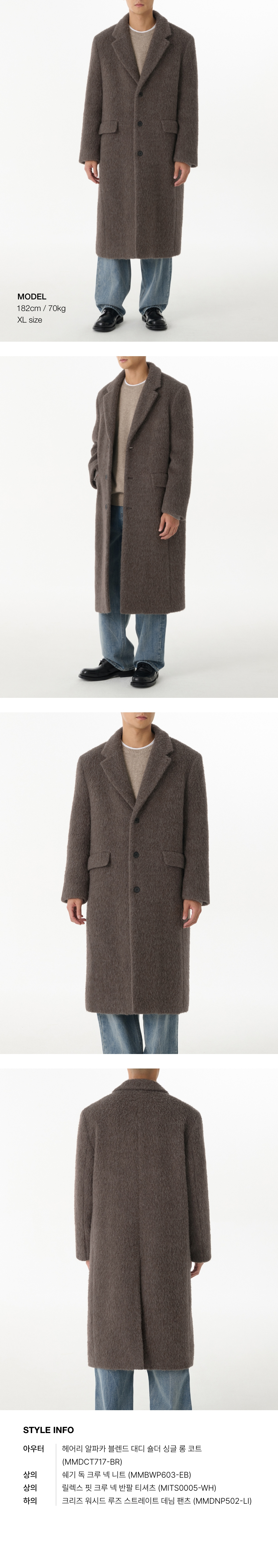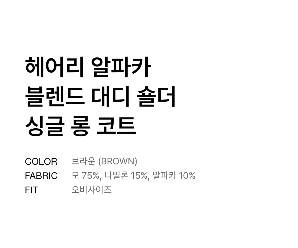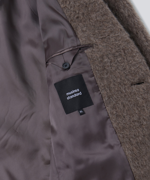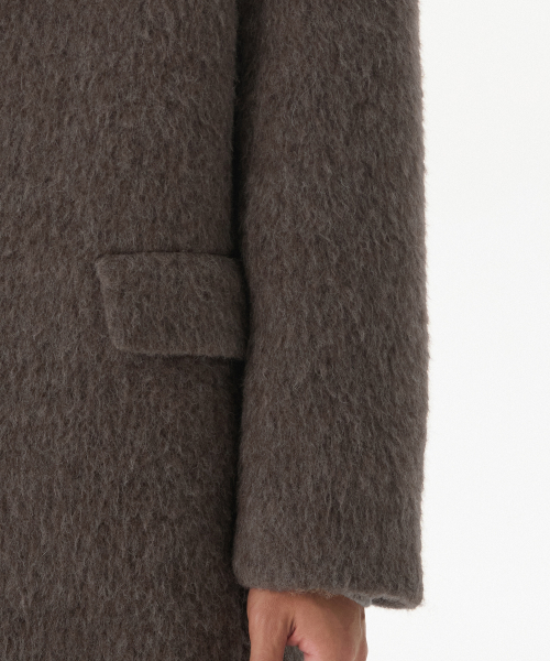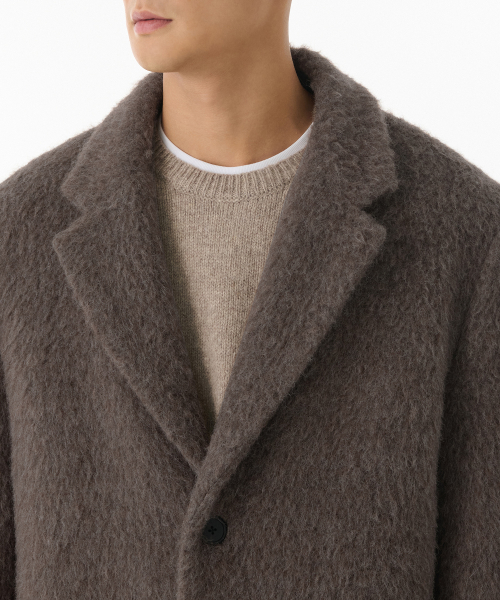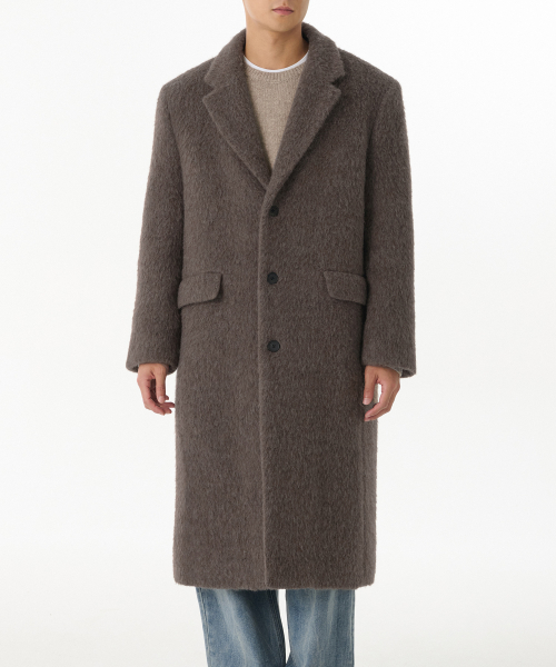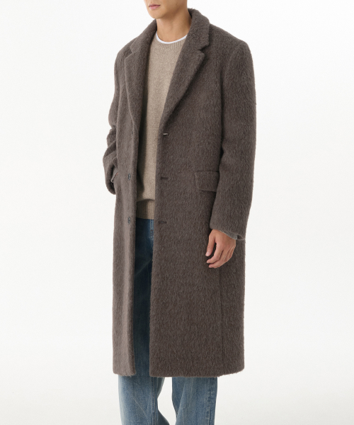 헤어리 알파카 블렌드 대디 숄더 싱글 롱 코트 [브라운]