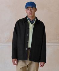 오버사이즈 더블 포켓 데님 셔츠 [워시드 블랙]