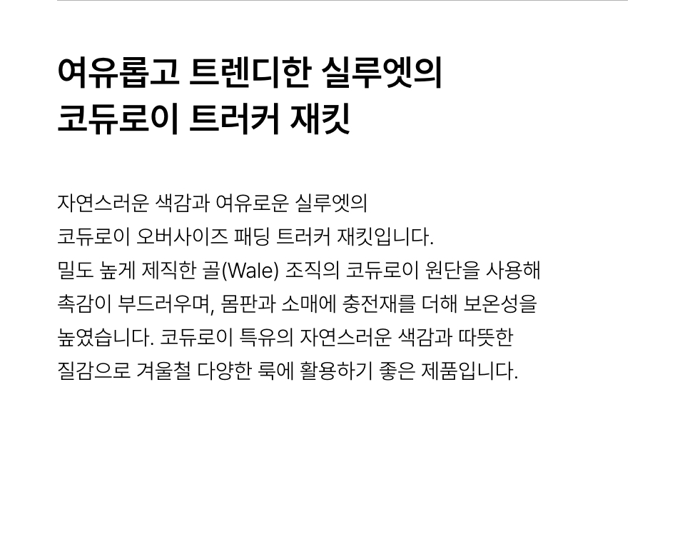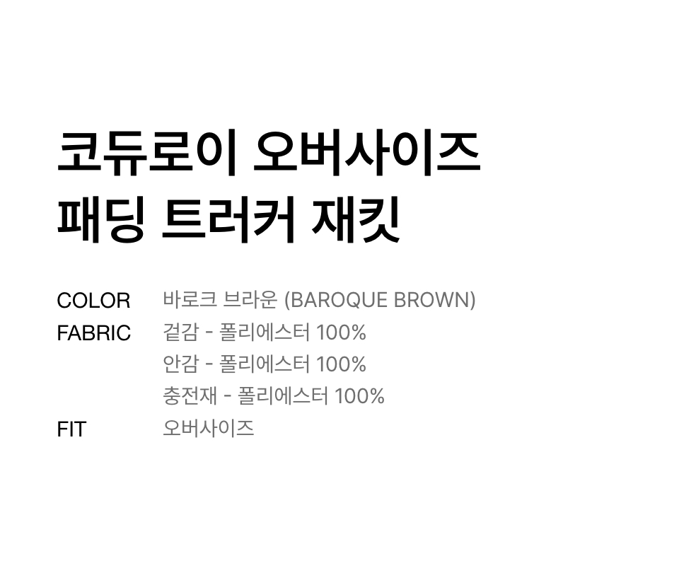 코듀로이 오버사이즈 패딩 트러커 재킷 [바로크 브라운]