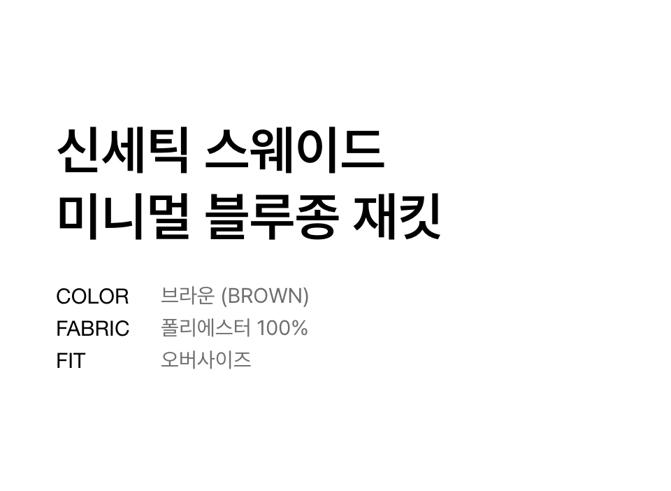 신세틱 스웨이드 미니멀 블루종 재킷 [브라운]