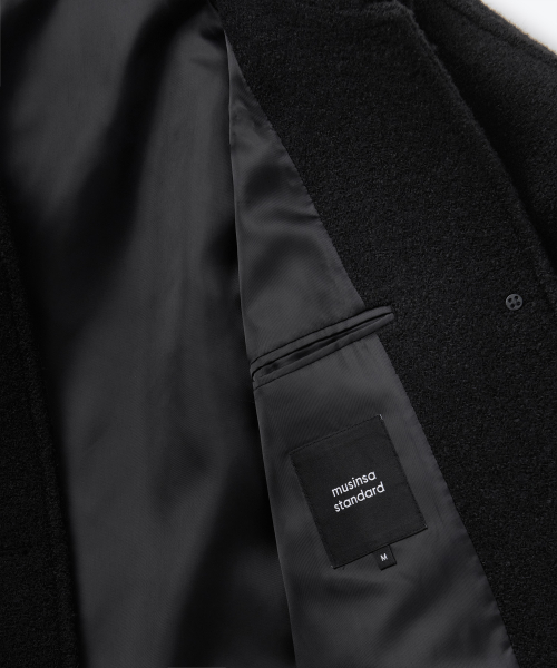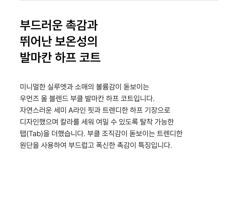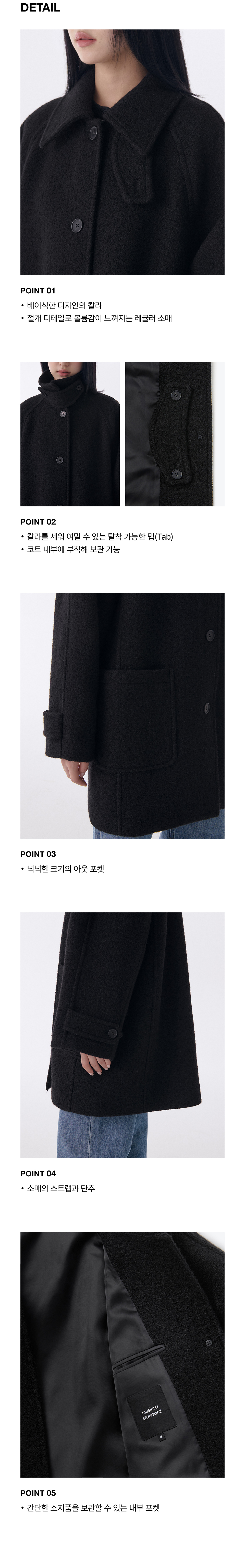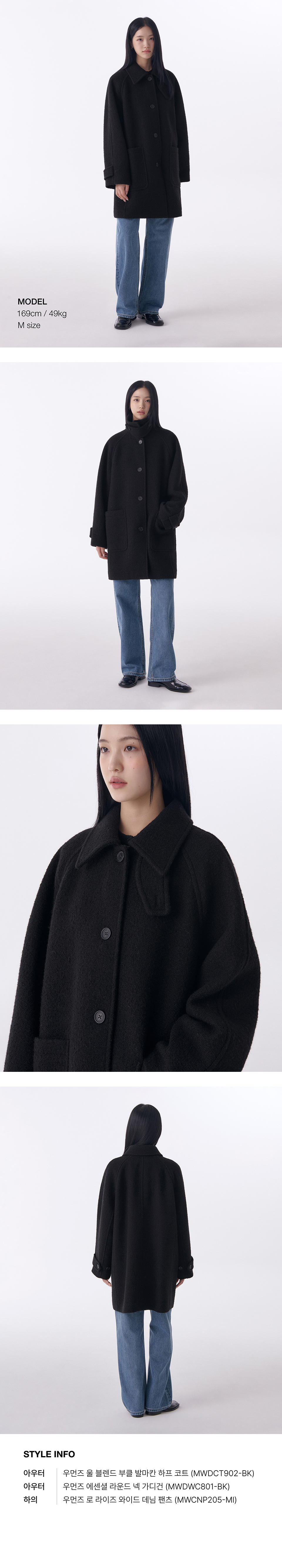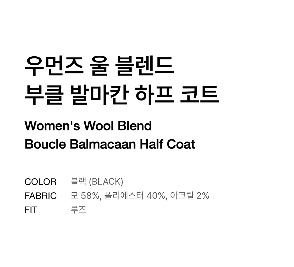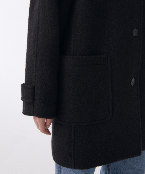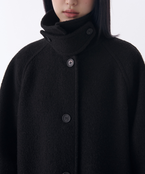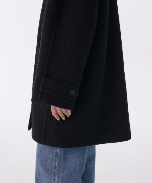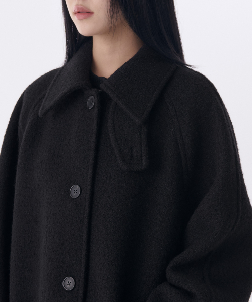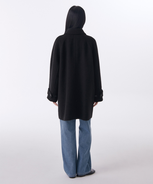 우먼즈 울 블렌드 부클 발마칸 하프 코트 [블랙]