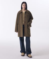 우먼즈 울 블렌드 부클 발마칸 하프 코트 [브라운]