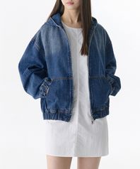 우먼즈 오버사이즈 데님 후디드 집업 재킷 [미디엄 인디고]