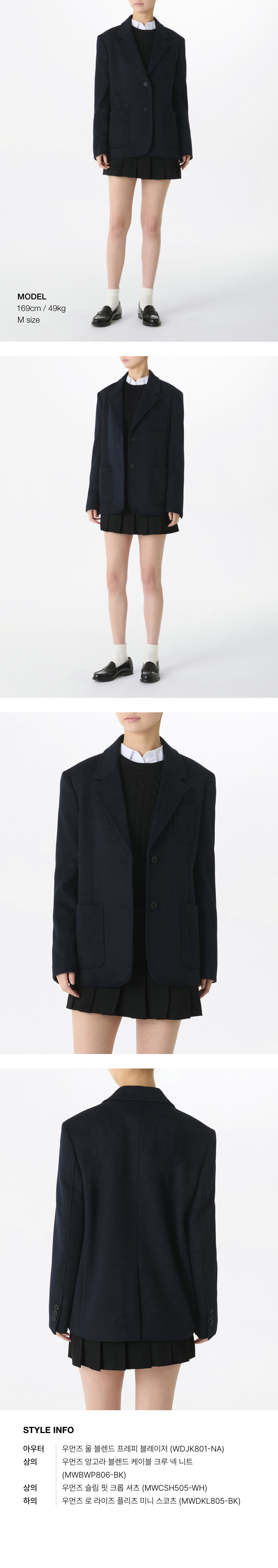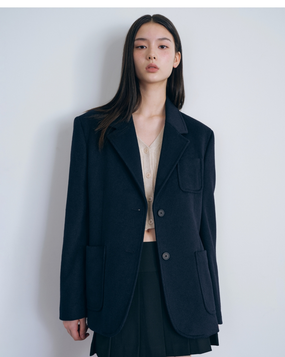 우먼즈 울 블렌드 프레피 블레이저 [네이비]