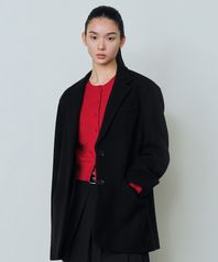 우먼즈 울 블렌드 멜톤 오버 숄더 블레이저 [블랙]