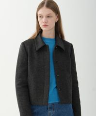 울 블렌드 싱글 크롭 자켓_다크그레이