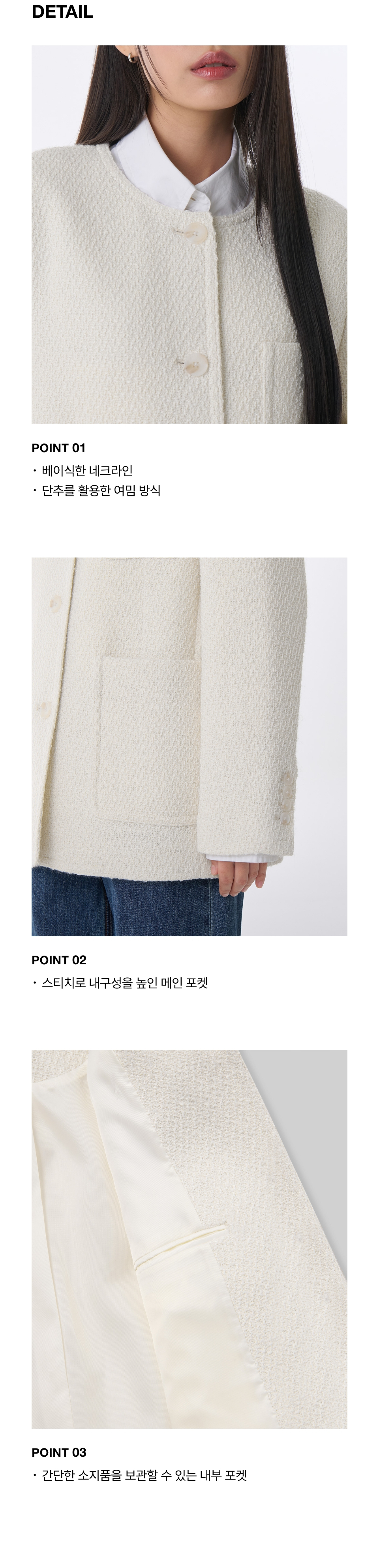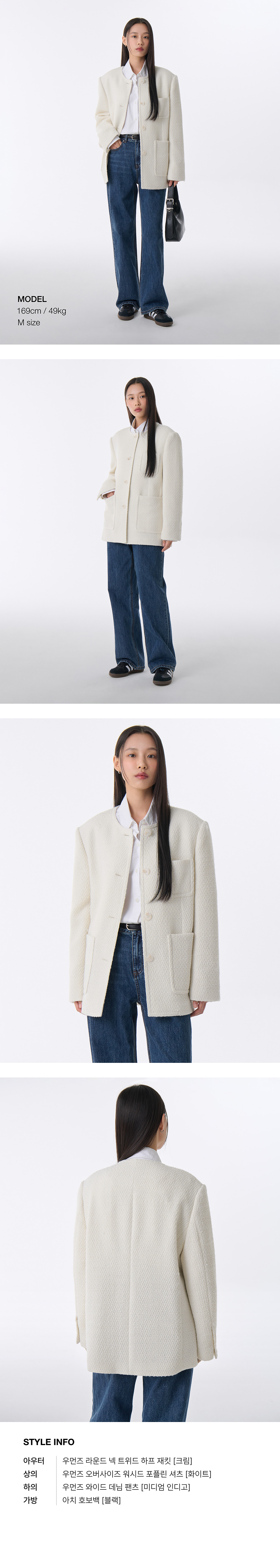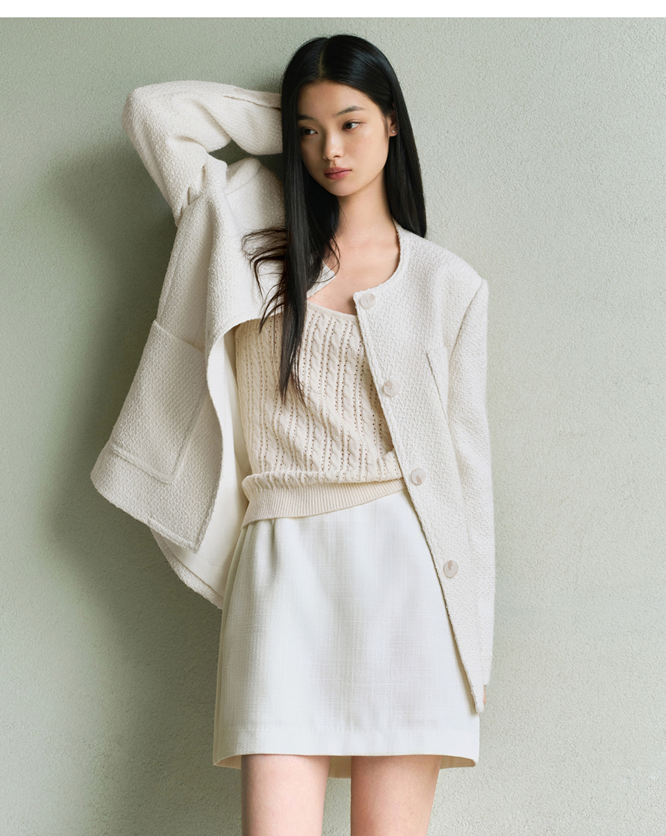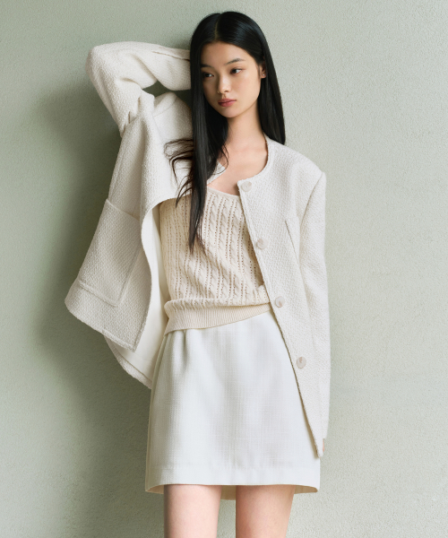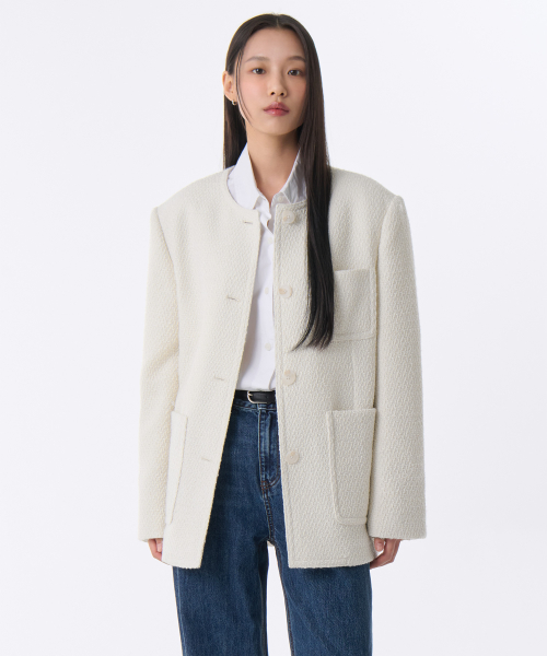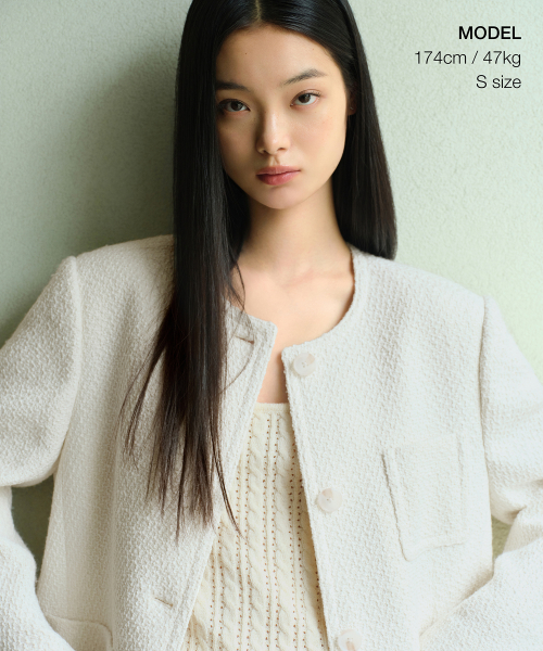 우먼즈 라운드 넥 트위드 하프 재킷 [크림]
