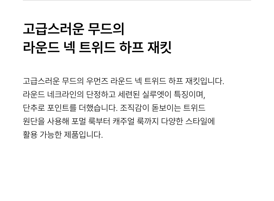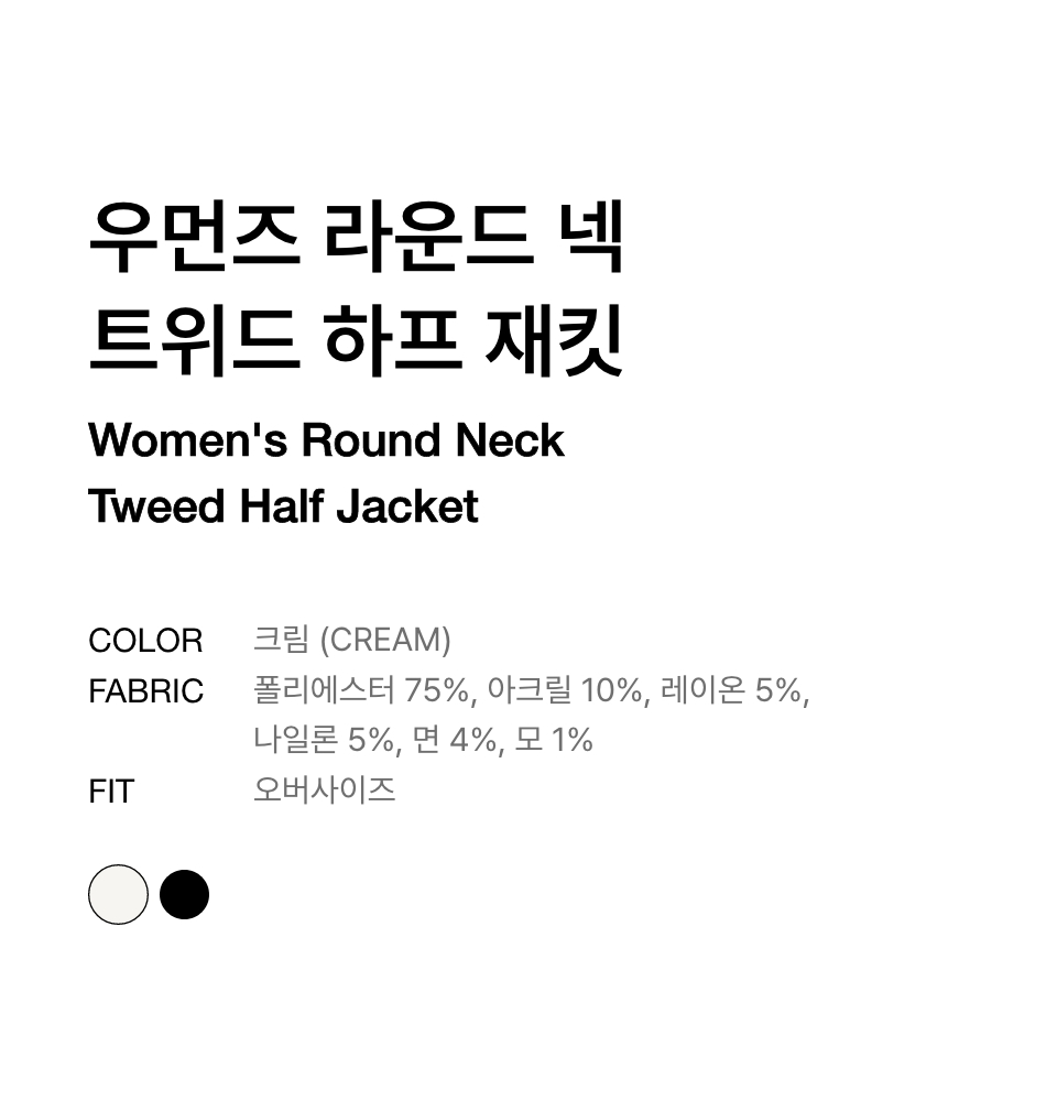 우먼즈 라운드 넥 트위드 하프 재킷 [블랙]