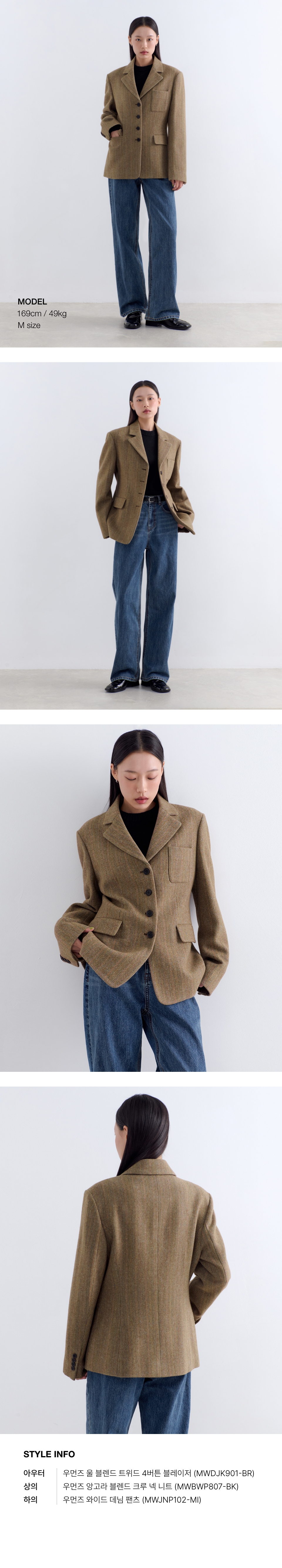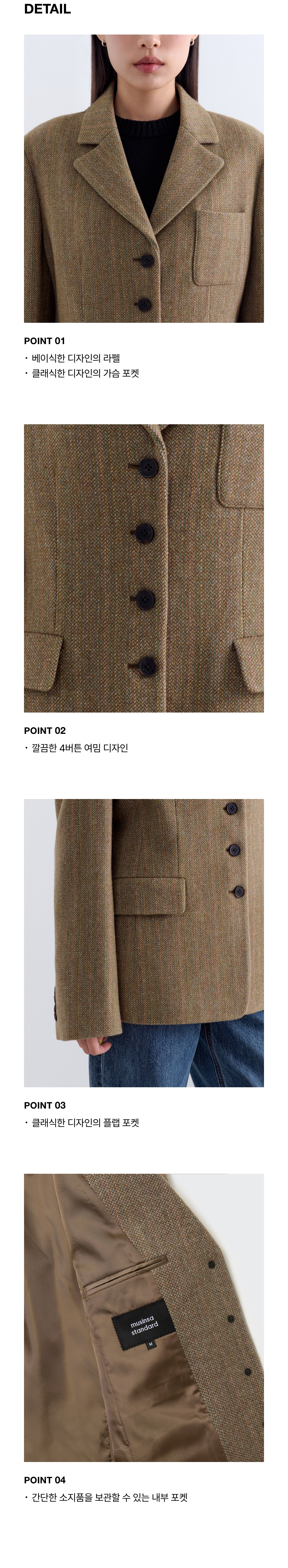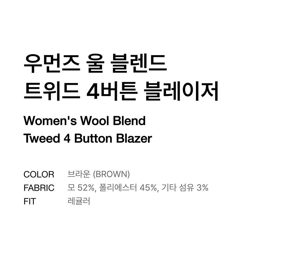 우먼즈 울 블렌드 트위드 4버튼 블레이저 [브라운]