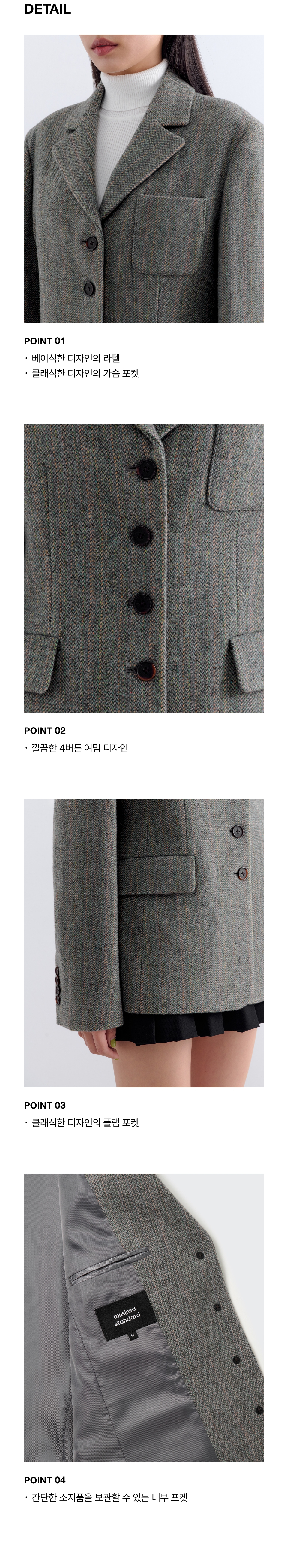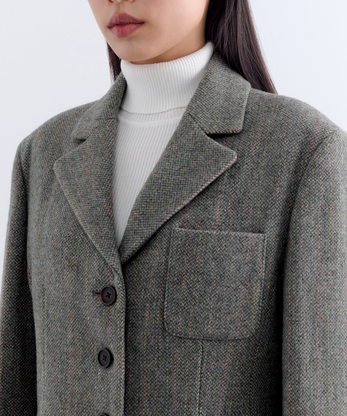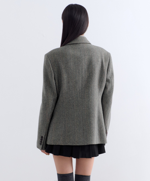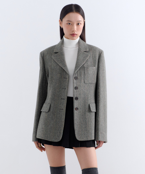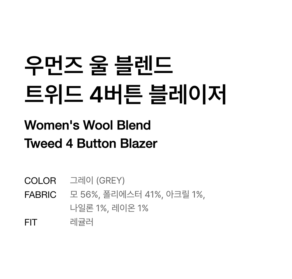 우먼즈 울 블렌드 트위드 4버튼 블레이저 [그레이]