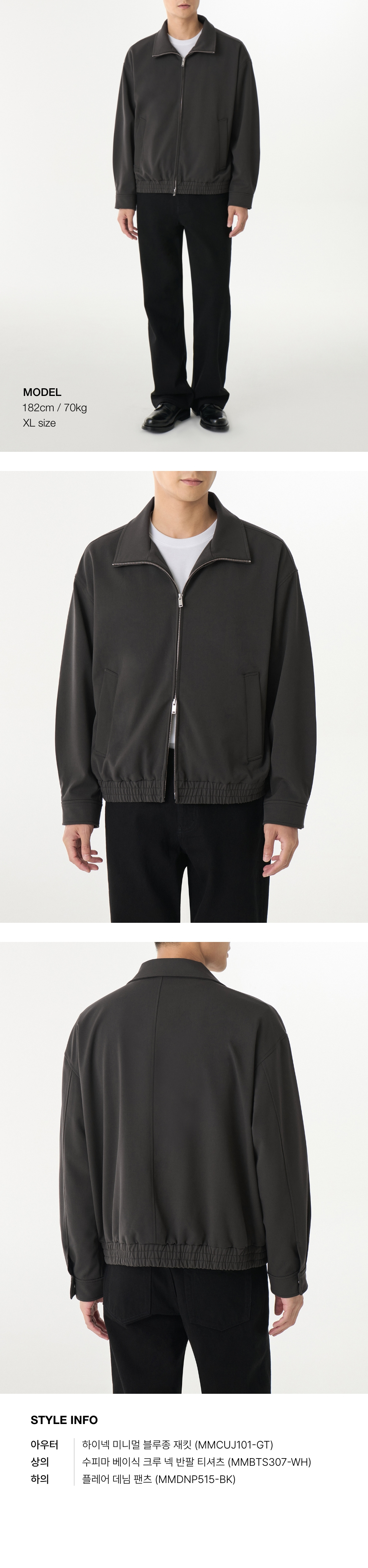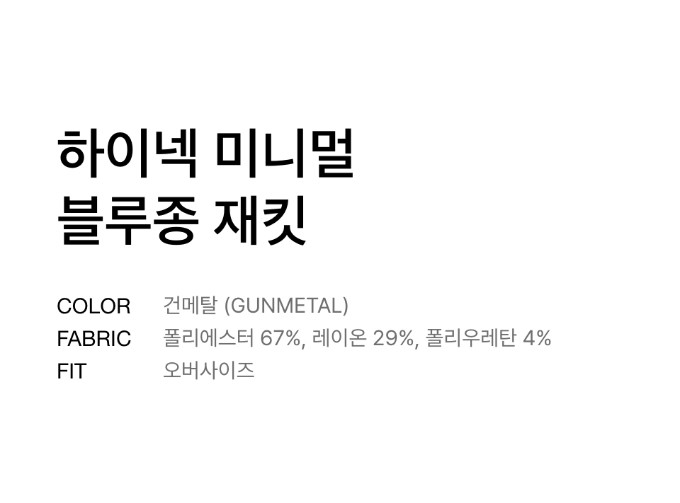 하이넥 미니멀 블루종 재킷 [건메탈]